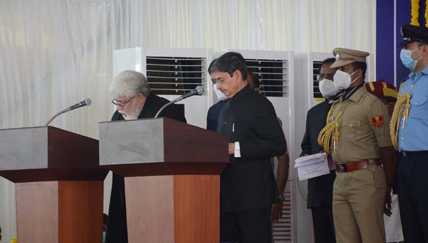 தலைமை நீதிபதி சஞ்சீவ் பானர்ஜி அவருக்கு பதவி பிரமாணம் செய்து வைத்தார். தலைமை நீதிபதி சஞ்சீவ் பானர்ஜி பதவி பிரமாணத்தை வாசிக்க வாசிக்க அதையே ஆர்.என்.ரவி வாசித்து பதவி ஏற்றுக்கொண்டார். பின்னர் ஆர்.என்.ரவியும், சஞ்சீவ் பானர்ஜியும் கோப்புகளில் கையெழுத்திட்டனர்.