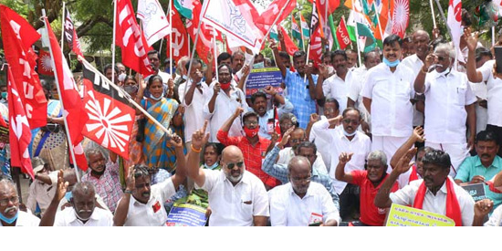 ஒன்றிய அரசின் வேளாண் சட்டங்கள், பொதுத்துறை நிறுவனங்களை தாரைவார்ப்பது, விலைவாசி உயர்வு ஆகியவற்றை கண்டித்து தமிழ்நாடு சிவில் சப்ளை கார்ப்பரேஷன் எம்ப்ளாயீஸ் யூனியன் தொமுச சங்கம் சார்பில் திருவள்ளூரில் உள்ள தமிழ்நாடு நுகர்பொருள் வாணிப கழக மண்டல அலுவலகம் முன்பு ஆர்ப்பாட்டம் நடத்தது. இந்த ஆர்ப்பாட்டத்திற்கு மண்டல தலைவர் எஸ்.எத்திராஜ் தலைமை வகித்தார். மண்டல செயலாளர் எஸ்.மணிவண்ணன், சிறப்பு தலைவர் டி.பன்னீர்செல்வம் கவுரவ தலைவர் பி.ரவிச்சந்திரன் ஆகியோர் முன்னிலை வகித்தனர். இதில் மண்டல நிர்வாகிகள் மற்றும் சங்க உறுப்பினர்கள் கலந்து கொண்டு ஒன்றிய அரசிற்கு எதிராக முழக்கமிட்டனர்.