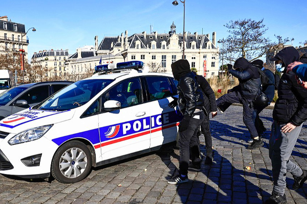 கலவர தடுப்பு பொலிசார் கண்ணீர்ப்புகை வீசி கூட்டத்தை கலைக்க முயன்றுள்ளனர். ஆர்ப்பாட்டங்களுக்கு அனுமதி அளிக்கப்படாத நிலையிலும், கனடாவில் முன்னெடுக்கப்படும் லொறி சாரதிகளின் ஆர்ப்பாட்டம் போன்றதொரு கூட்டத்தை பாரிஸ் நகரிலும் ஏற்படுத்த ஆர்ப்பாட்டக்காரர்கள் முயன்றுள்ளனர்.