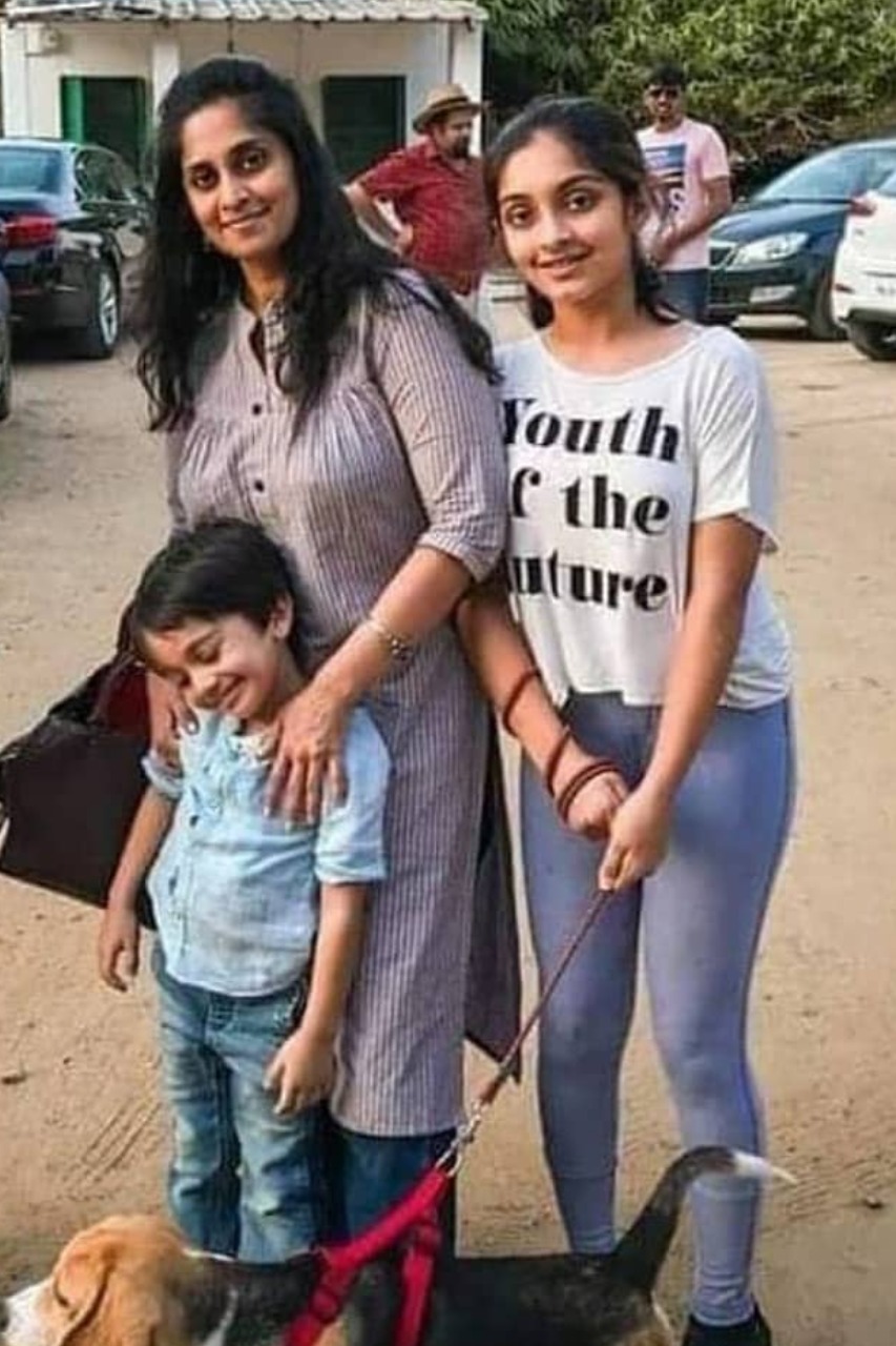 கண்ணாடி அணிந்து கொண்டு அம்மா மற்றும் சித்தியுடன் அனோஷ்கா இருக்கும் புகைப்படங்களுக்கு ரசிகர்கள் லைக்குகளை குவித்து வருகின்றனர்.