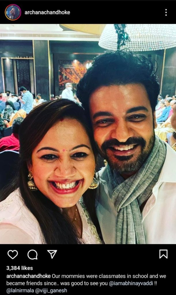 அது என்னவென்றால், அர்ச்சனா, பிக் பாஸ் பிரபலம் அபிநய் உடன் இருக்கும் புகைப்படத்தை பதிவிட்டு, இவர் என்னுடைய பள்ளி வகுப்பு தோழன்.