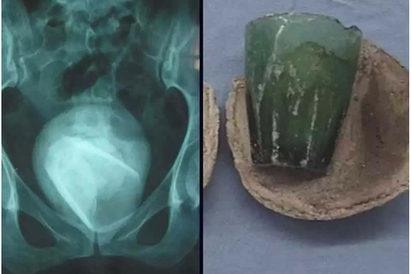 சிறுநீர் தொற்று என்று சிகிச்சைக்கு வந்த பெண்ணின் சிறுநீர் பையிலிருந்து கண்ணாடி டம்ளர் ஒன்றினை அகற்றியுள்ள சம்பவம் பேரதிர்ச்சியை ஏற்படுத்தியுள்ளது.