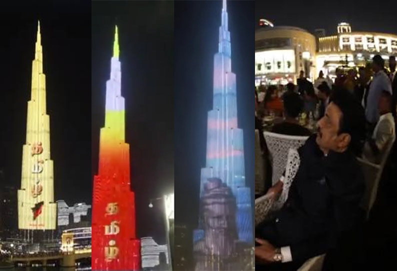 தமிழ்நாடு வார விழாவை ஒட்டி டுபாயில் உள்ள 2 ஆயிரத்து 217 அடி உயரமுள்ள புர்ஜ் காலிபா கோபுரம் மீது தமிழ், தமிழ்நாட்டின் வரலாறு, பண்பாடு, செம்மொழி, தமிழக அகழ்வாராய்ச்சிகள் குறித்த ஆவண காட்சிகள் திரையிடப்பட்டது.