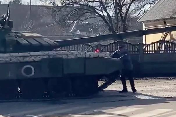 இந்த நிலையில், உக்ரைனின் பொதுமக்கள், செர்னிஹிவ் பகுதியில் பாக்மாச் நகரத்தின் வழியாக உள்ளே நுழையும், ரஷ்ய ராணுவ டாங்கிகள் மீது ஏறி தடுக்கும் காட்சிகள் வெளியாகி, வைரலாகி வருகிறது.