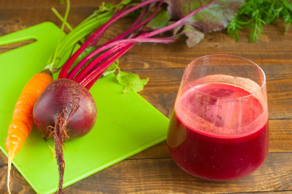தோல் சீவி, கொஞ்சம் சிறு துண்டுகளாக வெட்டி வைத்துக் கொண்ட பீட்ரூட், கேரட் , 1 மாதுளம் பழம், தேங்காய்த்துருவல் 2 ஸ்பூன், பேரிச்சம்பழம் 3 - இந்த எல்லாப் பொருட்களையும் மிக்ஸியில் போட்டு தண்ணீர் ஊற்றாமல் முதலில் விழுது போல அரைத்து கொள்ள வேண்டும்.