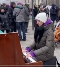உக்ரைனில் ரஷ்யா போர் தொடுத்ததன் விளைவாக நாட்டைவிட்டு அவசர அவசரமாக வெளியேறுவதற்காக லிவிவ் நகர ரயில்நிலையத்தில் கவலையுடன் காத்திருக்கும் பொதுமக்களின் மத்தியில் இளம்பெண் ஒருவரின் பியானோ மெல்லிசை அனைவரது கவனத்தையும் ஈர்த்துள்ளது.