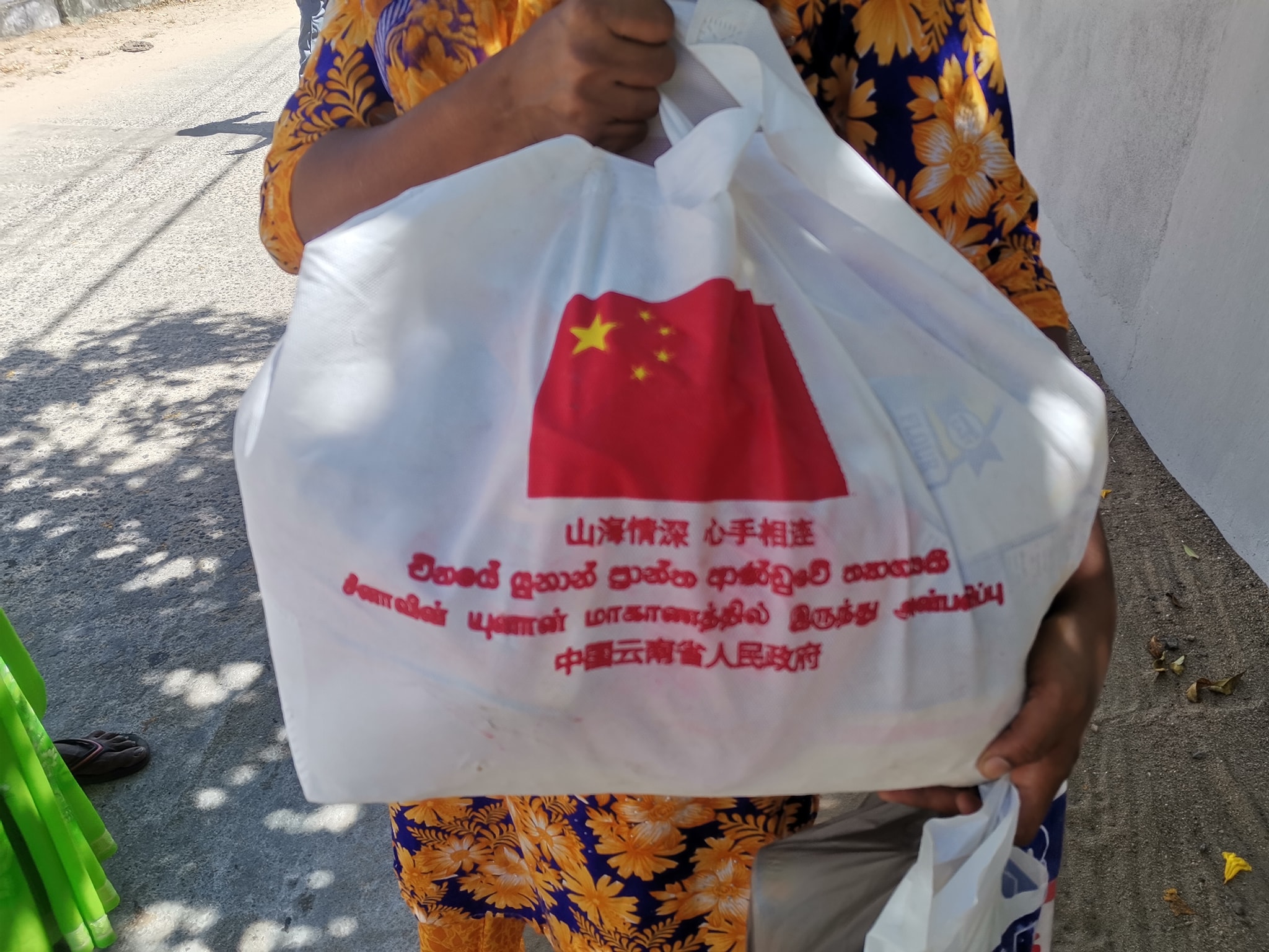 அம்பாறை மாவட்டம் திருக்கோவில் பிரதேசத்தில் உள்ள மக்களுக்கு சினாவினால் வழங்கி வைக்கப்பட்ட நிவாரண பொருட்கள் கொடுக்கப்பட்டிருந்தது. குறித்த நிவாரணப் பொதிகள் சீனாவின் யுனான் மாகாணத்தில் இருந்து அனுப்பி வைக்கப்பட்டிருந்ததாக கூறப்பட்டிருந்தது.