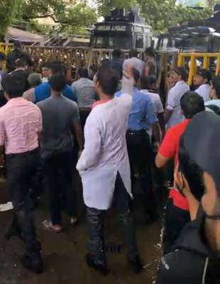 மருத்துவபீட மாணவர்கள் திரண்டுள்ளமை காரணமாக தற்போது உலக வர்த்தக மையம் முன் பதற்றநிலை ஏற்பட்டுள்ளது.