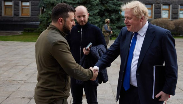 போர் நடந்து வரும் சூழ்நிலையில், இங்கிலாந்து பிரதமர் போரிஸ் ஜான்சன் உக்ரைன் தலைநகர் கீவ் சென்றார். கீவ் நகரில் உக்ரைன் அதிபர் ஜெலன்ஸ்கியை சந்தித்து ஆலோசனை நடத்தினார். உக்ரைனுக்கு தேவையான உதவிகள் வழங்கப்படும் என உறுதிபட தெரிவித்தார்.