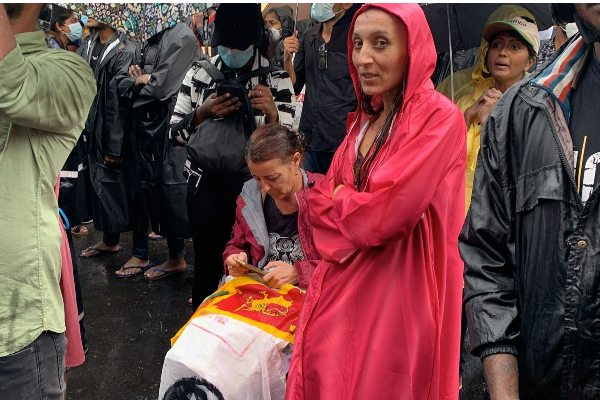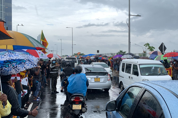 ஏராளமான மக்களின் பங்குபற்றுதலுடன் மழைக்கு மத்தியிலும் ஜனாதிபதி செயலகத்தை முற்றுகையிட்டு போராட்டம் முன்னெடுக்கப்படுகின்றது.