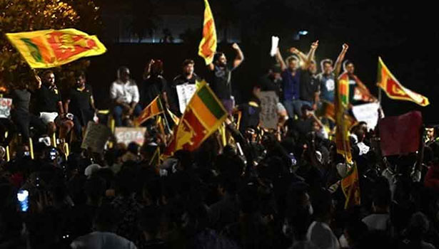 இந்தநிலையில், கொழும்பு நகரில் விஜேரமா மவாத்தா பகுதியில் உள்ள மகிந்த ராஜபக்சே இல்லத்தை பல்கலைக்கழக மாணவ கூட்டமைப்பு சார்பில் பங்கேற்ற ஆயிரக்கணக்கான மாணவர்கள் சுற்றி வளைத்தனர். காம்பவுண்டு சுவர் மீதும் ஏறினர். ‘வீட்டுக்கு போ, ராஜபக்சே’ என்று சுவரில் எழுதினர்.