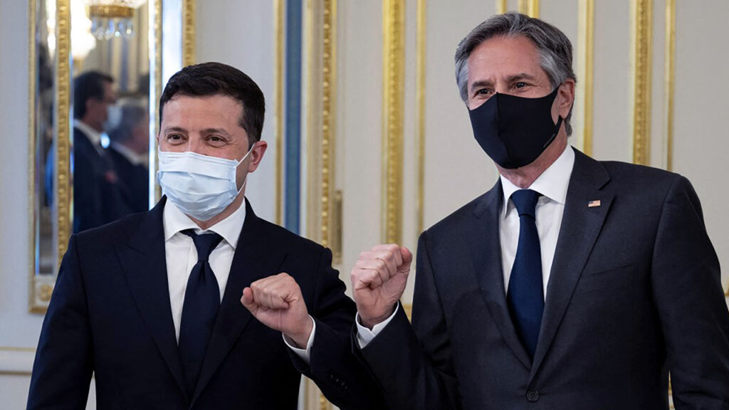 இந்நிலையில், அமெரிக்க வெளியுறவுத்துறை செயலர் ஆண்டனி பிளிங்கன் மற்றும் அமெரிக்க பாதுகாப்பு செயலர் லாயிட் ஆஸ்டின் ஆகியோர் உக்ரைன் தலைநகர் கீவுக்கு வருகை தந்தனர். அவர்களை உக்ரைன் அதிபர் வொலோடிமிர் ஜெலன்ஸ்கி இன்று சந்தித்தார் என அந்நாட்டு அதிபர் அலுவலகம் தெரிவித்துள்ளது.