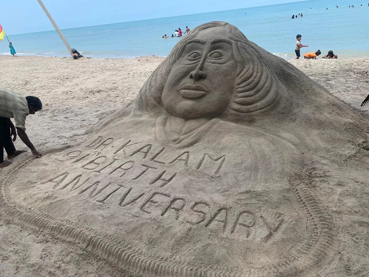 இந்தியாவின் மறைந்த முன்னாள் ஜனாதிபதி ஏ.பி.ஜெ.அப்துல் கலாமின் மணல் சிற்பம் காரை நகரிலுள்ள கசூரினா கடற்கரையில் உருவாக்கப்பட்டுள்ளது.
