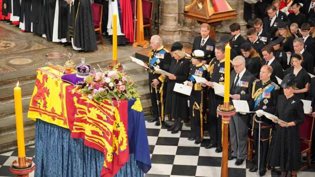 மறைந்த இரண்டாம் எலிசபெத் மகாராணியின் பூதவுடல் தாங்கிய பேழை வெஸ்மினிஸ்டர் தேவாலயத்திற்கு கொண்டு செல்லப்பட்டது.