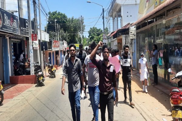 யாழ்ப்பாண பல்கலைக்கழக பிரதான நுழைவாயிலுக்கு முன்பாக இன்று நண்பகல் 12 மணியளவில் ஒன்றுகூடிய பல்கலைக்கழக மாணவர்கள் அங்கிருந்து கோஷங்களை எழுப்பியவாறு பேரணியாக இராமநாதன் வீதி ஊடாக பரமேஸ்வராச் சந்தியை அடைந்து அங்கிருந்து சிறிது நேரம் வீதியை முடக்கி போராட்டத்தில் ஈடுபட்டதுடன் பின்னர் பேரணியாக பல்கலைக்கழகத்தை வந்தடைந்தனர்.