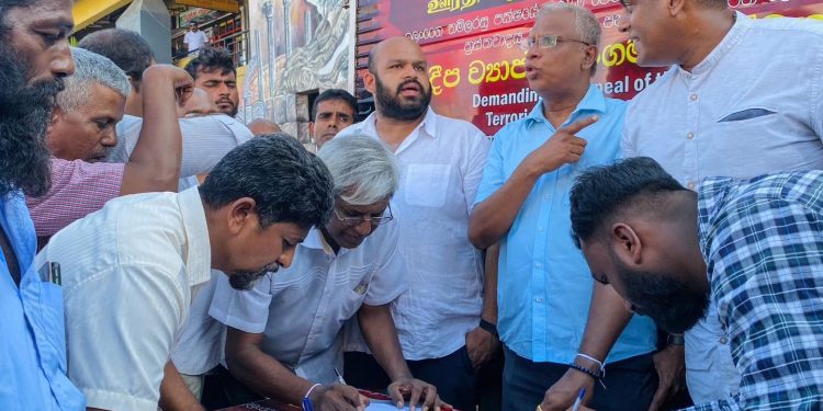பயங்கரவாதத் தடைச் சட்டத்திற்கு எதிராக கையெழுத்து திரட்டும் நடவடிக்கை நேற்று மாலையும் முன்னெடுக்கப்பட்டிருந்தது.