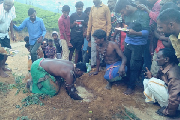 அடுத்து தாவிய பூசாரி மூன்றாம் இடத்திலும் குழி தோண்றி பரிகாரங்கள் செய்து மண் உருண்டையை எடுத்து தட்டில் வைக்க பார்வையிட்ட மக்கள் புலம்பல் ஓயவில்லை.