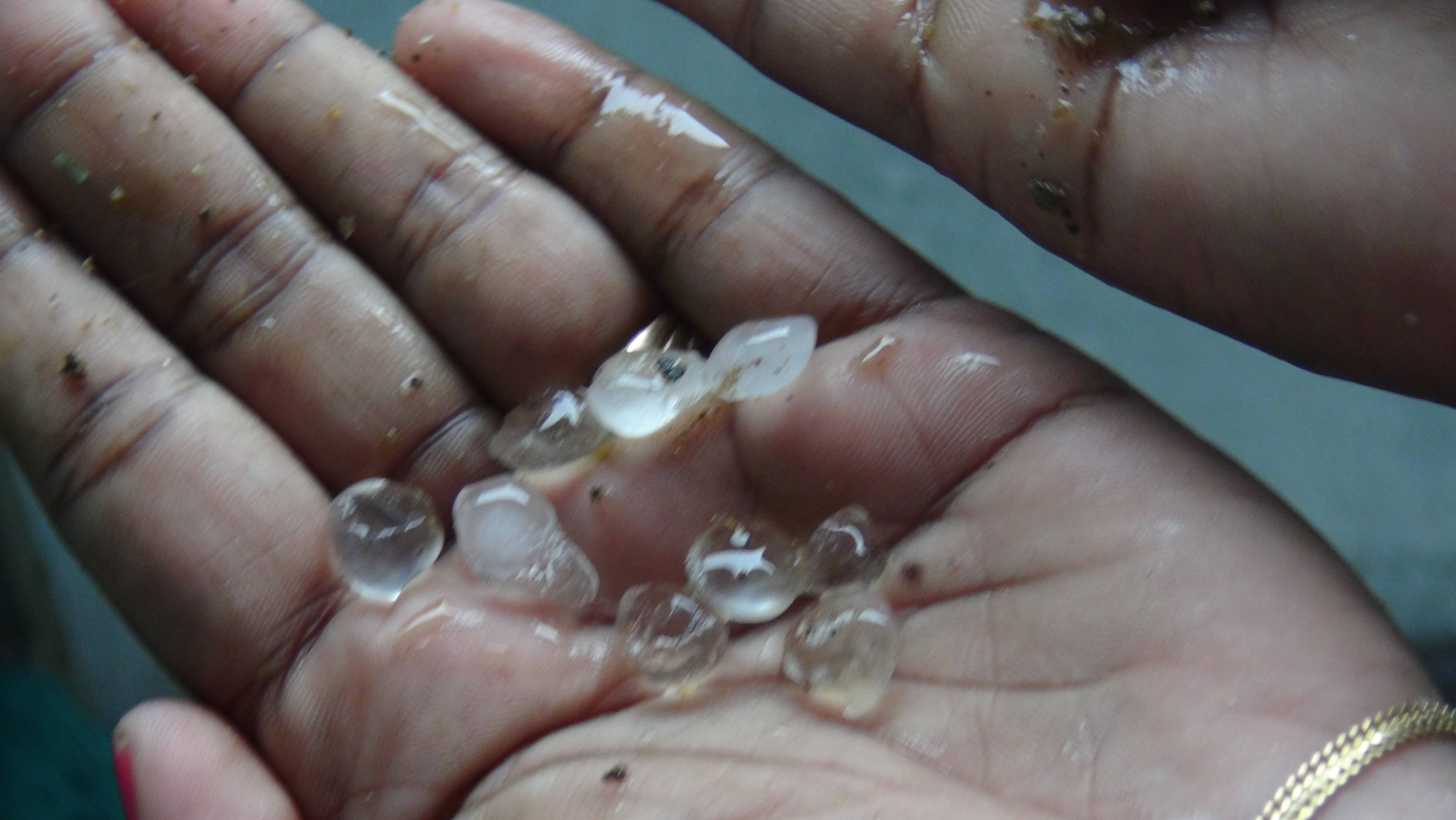 ஆலங்கட்டி மழை காரணமாக தரக கூரைகளைக் கொண்ட வீடுகளில் அதிக சத்தம் காணப்பட்டுள்ளது.