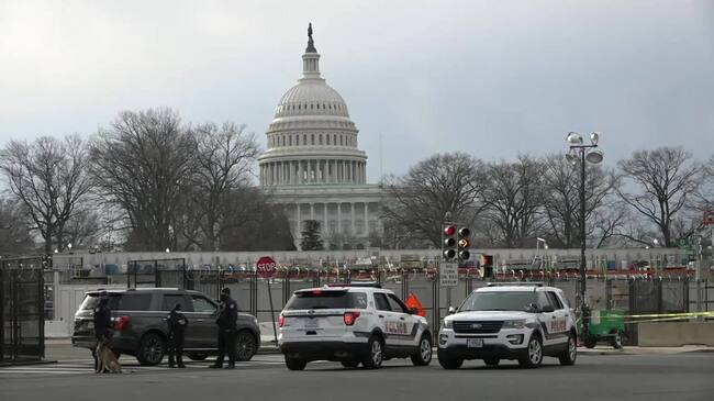 அமெரிக்க பாராளுமன்ற வளாகத்திற்கு அருகில் தீ பரவுவதாக பொலிஸார் தெரிவித்ததுடன் பைடனின் பதவியேற்பு நிகழ்வு ஒத்திகையும் நிறுத்தப்பட்டது.