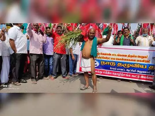 ஆர்ப்பாட்டத்தில் பங்கேற்ற விவசாயி ஒருவர் மொட்டையடித்து கோவணம் கட்டியபடி ஆர்ப்பாட்டத்தில் பங்கேற்று விவசாயிகளின் தற்போது நிலை என்பதை உணர்த்தும் வகையில் கண்டனத்தை பதிவு செய்ததால் பரபரப்பு ஏற்பட்டது