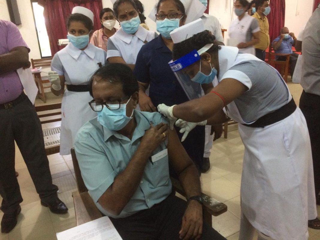 கொவிட் நோய்த்தொற்று தடுப்பு நடவடிக்கையில் ஈடுபடும் மருத்துவ சேவையாளர்கள் மற்றும் சுகாதாரத் துறையினர்கள் நால்வருக்கு யாழ்ப்பாணம் போதனா வைத்தியசாலையில் தடுப்பூசி ஏற்றும் பணி ஆரம்பித்து வைக்கப்பட்டது.
