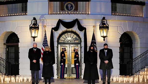 இந்நிலையில் அமெரிக்காவில் கொரோனாவுக்கு 5 லட்சம் பேர் பலியானதையொட்டி வெள்ளை மாளிகையில் ஜனாதிபதி ஜோ பைடன் மெழுகுவர்த்திகளை ஏற்றி மவுன அஞ்சலி செலுத்தினார். அவரது மனைவி ஜில் பைடன், துணை ஜனாதிபதி கமலா ஹாரிஸ், அவரது கணவர் டக் எம்ஹாப் ஆகியோரும் கொரோனாவில் இறந்தவர்களுக்காக மவுன அஞ்சலி செலுத்தினர்.