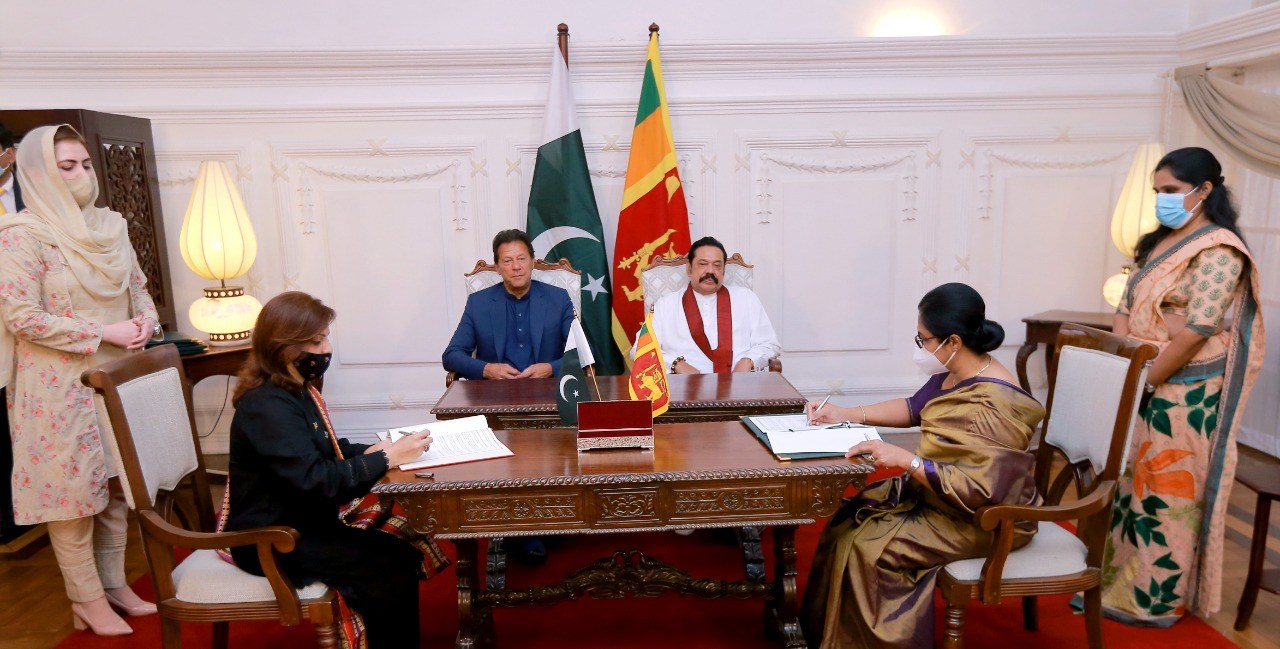 பிரதமர் மஹிந்த ராஜபக்ஷ மற்றும் பாகிஸ்தான் பிரதமர் இம்ரான் கான் ஆகியோரின் முன்னிலையில் இரு நாட்டு பிரதிநிதிகள் இதில் கலந்துகொண்டிருந்தனர்.