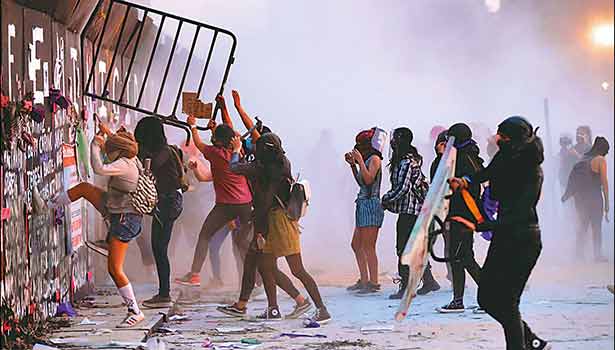 இதற்கிடையில் போராட்டக்காரர்கள் அதிபர் மாளிகைக்குள் நுழைந்திடாத வண்ணம் அதிபர் மாளிகையின் முன்பு போலீசார் இரும்பு சுவரை அமைத்தனர். மேலும் அதிபர் மாளிகையை சுற்றிலும் பெண் போலீசார் பாதுகாப்புக்காக குவிக்கப்பட்டனர். இந்த நிலையில் அதிபர் மாளிகையை நெருங்கிய போராட்டக்காரர்கள் சுத்தியல், மரக்கட்டைகள் உள்ளிட்டவற்றால் இரும்பு சுவரை தகர்த்து கீழே தள்ள முயற்சித்தனர்.