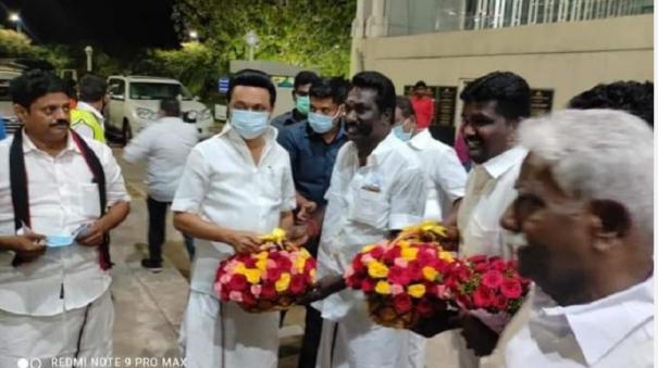 சட்டமன்ற தேர்தல் நெருங்கி வரும் நிலையில் திமுக தலைவர் முக ஸ்டாலின் அக்கட்சியின் வேட்பாளர்கள் மற்றும் கூட்டணி கட்சி வேட்பாளர்களை ஆதரித்து பரப்புரை மேற்கொண்டு வருகிறார். அந்த வகையில் திருமங்கலம் தொகுதியில் திமுக வேட்பாளர் மணிமாறனை ஆதரித்து பரப்புரை மேற்கொண்ட ஸ்டாலின் நிகழ்ச்சியை முடித்து கொண்டு சென்னை வருவதற்காக மதுரை விமான நிலையத்திற்கு வந்திருந்தார்.