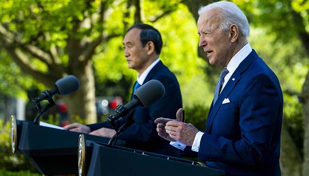 அமெரிக்காவில் சுற்றுப்பயணம் மேற்கொண்டுள்ள ஜப்பான் பிரதமர் யோஷிஹைட் சுகா அந்த நாட்டின் ஜனாதிபதி ஜோ பைடனை நேரில் சந்தித்து பேச்சுவார்த்தை நடத்தினார்