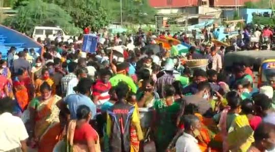 முழு ஊரடங்கு காலத்தில் இறைச்சிக்கடைகள் தினமும் காலை 6 மணியில் இருந்து மதியம் 12 வரை திறந்திருக்கும் என்று தெரிவிக்கப்பட்டிருந்த போதிலும் இன்று ஞாயிற்றுக் கிழமை என்பதால் அனைத்து இறைச்சிக் கடைகளிலும், மீன் மார்க்கெட்டுகளிலும் மக்கள் கூட்டம் அதிகமாக இருந்தது.