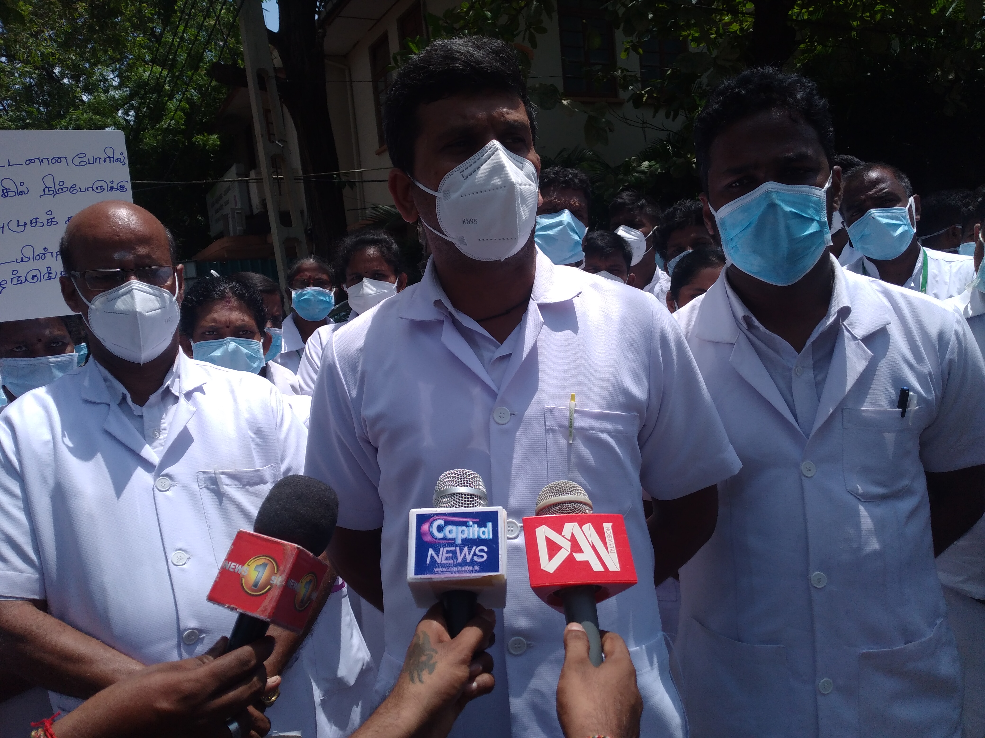 யாழ்போதனா வைத்தியசாலை முன்றலில் போராட்டத்தில் ஈடுபட்டனர்.