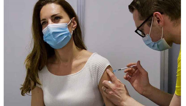 இந்நிலையில், இங்கிலாந்து இளவரசர் வில்லியமின் மனைவி 39 வயதான இளவரசி கேட் மிடில்டன், நேற்று லண்டன் அறிவியல் அருங்காட்சியகத்தில் அமைக்கப்பட்டுள்ள கொரோனா தடுப்பூசி முகாமில் வைத்து முதல் டோஸ் தடுப்பூசியை செலுத்திக் கொண்டார்.