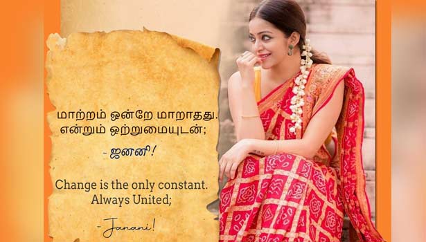 இந்நிலையில், ‘மாற்றம் ஒன்றே மாறாதது, என்றும் ஒற்றுமையுடன்’ என குறிப்பிட்டு, சமூக வலைதளங்களில் தனது பெயரிலிருந்த ஜாதி அடையாளத்தை நீக்கி உள்ளார் நடிகை ஜனனி. அவரின் இந்த மாற்றத்துக்கு பாராட்டுகள் குவிந்து வருகிறது. ஆனால் ஏன் இந்த திடீர் ஜாதி துறப்பு என்பதை நடிகை ஜனனி விளக்கவில்லை.