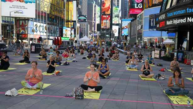 இந்நிலையில், அமெரிக்காவில் இந்தியாவின் துணைத் தூதரகம், நியூயார்க் டைம்ஸ் சதுக்கத்தில் சர்வதேச யோகா கொண்டாட்டங்கள் நடத்தப்பட்டது. 'சங்கராந்தி' என்ற தலைப்பில் நடைபெற்ற இந்த நிகழ்ச்சியில் 3,000 க்கும் மேற்பட்டோர் கலந்து கொண்டனர்.