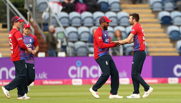 இங்கிலாந்து சார்பில் மார்க் வுட், அடில் ரஷித் தலா 2 விக்கெட்டும், சாம் கரன், கிறிஸ் ஜோர்டான் தலா ஒரு விக்கெட்டும் வீழ்த்தினர்.