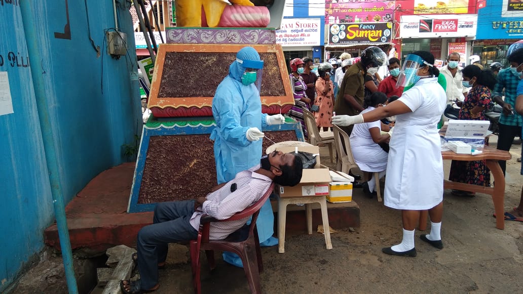 பசார் வீதி சந்தி, தர்மலிங்கம் வீதி சந்தி, சந்தை உள்வட்ட வீதி சந்தி, மில் வீதியில் உள்ள தனியார் விருந்தினர் விடுதி என்பவற்றில் வைத்து சுகாதாரப் பிரிவினரால் பி.சி.ஆர் பரிசோதனை முன்னெடுக்கப்பட்டிருந்தது.
