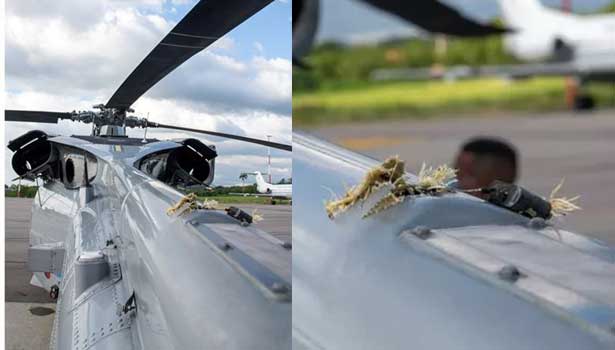 இந்த நிலையில் இந்த ஹெலிகாப்டர் கோகட்டா நகரில் தரை இறங்கும் சமயத்தில் பயங்கரவாதிகள் ஹெலிகாப்டரை குறிவைத்து துப்பாக்கியால் சுட்டனர். ஹெலிகாப்டரில் 6 முறை துப்பாக்கியால் சுடப்பட்டது. இதனால் பெரும் பதற்றமும், பீதியும் உருவானது. எனினும் விமானிகள் மிகவும் சாதுரியமாக செயல்பட்டு ஹெலிகாப்டரை பத்திரமாக தரை இறக்கினர். அதனைத் தொடர்ந்து அதிபர் இவான் டியூக் உள்பட ஹெலிகாப்டரில் இருந்த அனைவரும் பத்திரமாக வெளியேற்றப்பட்டனர்.