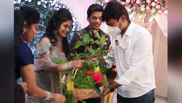 இந்நிலையில், இசையமைப்பாளர் ஜெரார்டு பெலிக்ஸ் - பிரேஷி சாந்தனா என்பவரை திருமணம் செய்துகொண்டார். இவர்களின் திருமண வரவேற்பு நிகழ்ச்சி சென்னையில் நேற்று நடந்தது. இதில் முதல்வர் மு.க.ஸ்டாலின் மற்றும் நடிகரும், எம்.எல்.ஏ-வுமான உதயநிதி ஸ்டாலின் ஆகியோர் கலந்து கொண்டு, மரக்கன்றுகள் அடங்கிய பசுமைக்கூடையை வழங்கி மணமக்களை வாழ்த்தினர்.