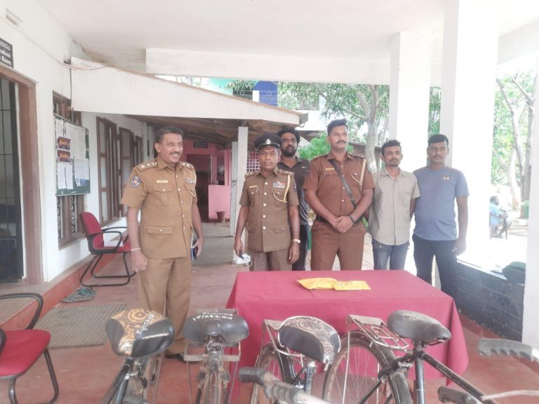 சந்தேகநபர்களிடமிருந்து திருடப்பட்ட ஐ போன் ஒன்று, நான்கு சைக்கிள்கள் உள்ளிட்ட பெறுமதியான பொருள்கள் கைப்பற்றப்பட்டுள்ளன என்று காவல்துறையினர் குறிப்பிட்டனர்.