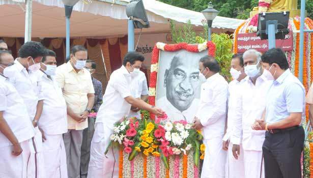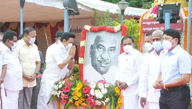 இன்று காலை அரசின் சார்பில் சிலைக்கு மாலை அணிவிக்கப்பட்டதும் காமராஜரின் உருவப்படத்துக்கு முதல்-அமைச்சர் மு.க.ஸ்டாலின் மலர் தூவி மரியாதை செலுத்தினார்.