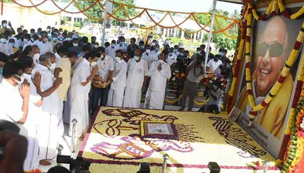 முன்னாள் முதலமைச்சர் கலைஞர் மு.கருணாநிதியின் 3ம் ஆண்டு நினைவு தினத்தையொட்டி, சென்னை மெரினாவில் உள்ள அவரது நினைவிடத்தில் முதலமைச்சர் மு.க.ஸ்டாலின் மற்றும் அவரது குடும்பத்தினர் மலர் தூவி மரியாதை செலுத்தினர்.