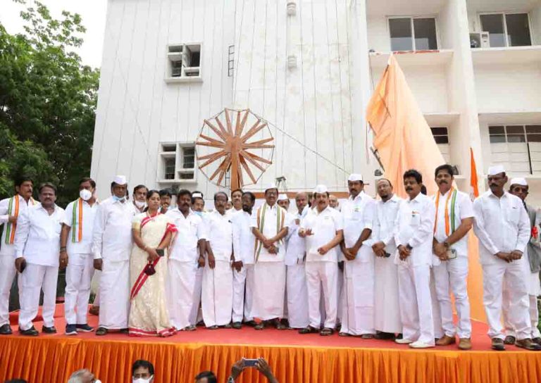 சென்னை சத்தியமுர்த்தி பவனில் உள்ள 150 அடி உயர கோடி கம்பத்தில் 75வது சுதந்திர தினத்தை முன்னிட்டு தமிழ்நாடு காங்கிரஸ் கமிட்டி தலைவர் கே.எஸ்.அழகிரி நேற்று தேசிய கோடி ஏற்றி வைத்தார்.