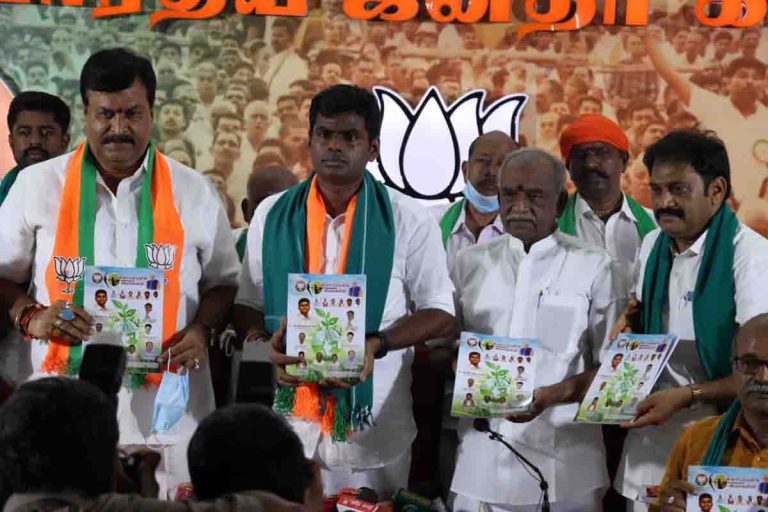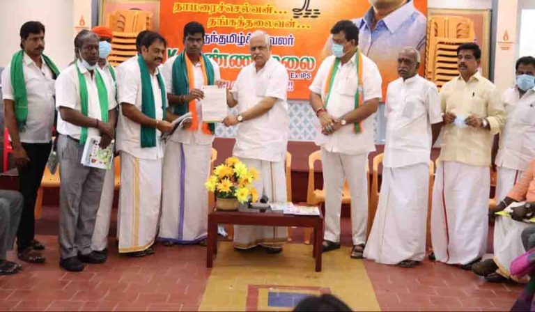 மத்திய அரசின் விவசாய திட்டங்கள் மற்றும் வேளாண் திட்டங்கள் தொடர்பான தமிழ் கையேட்டினை தமிழக பாஜக தலைவர் அண்ணாமலை வெளியிட அதனை விவசாயிகள் பெற்றுக் கொண்டனர்.