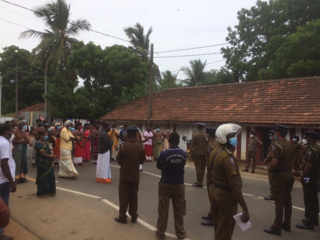 பொதுமக்கள் கொடியேற்ற நிகழ்வினை பார்க்காதவாறு தடைசெய்யப்பட்டுள்ளது அதற்கு எதிர்ப்பு தெரிவித்து பொதுமக்களுக்கும் காவல்துறையினருக்கும் இடையில் முரண்பாடு ஏற்பட்டுள்ளது
